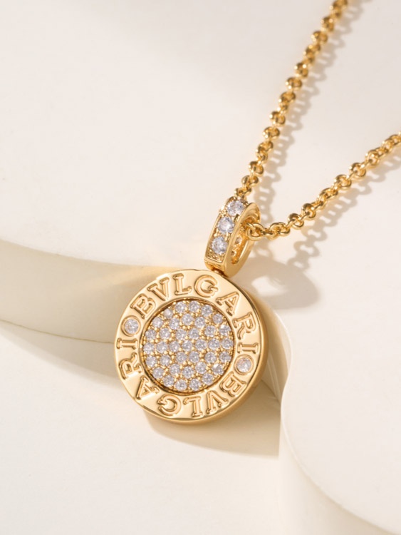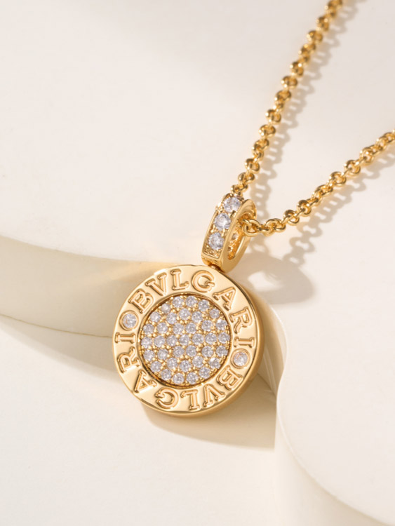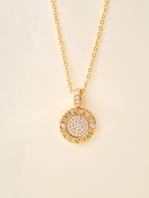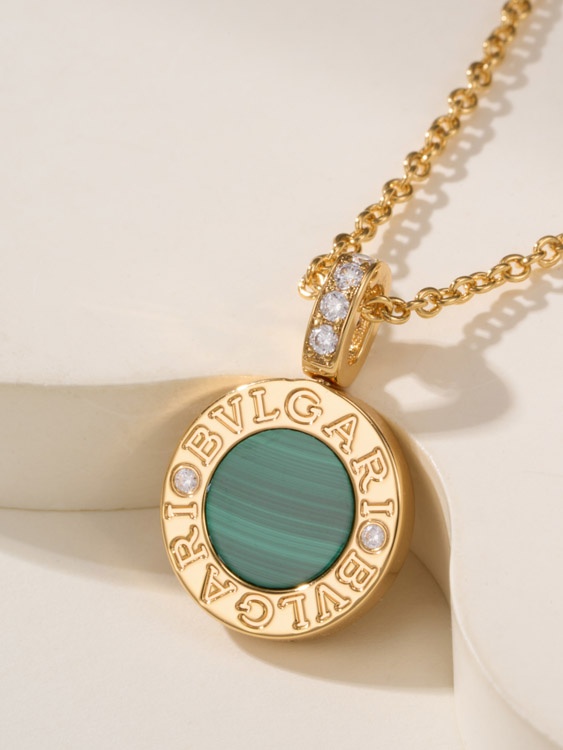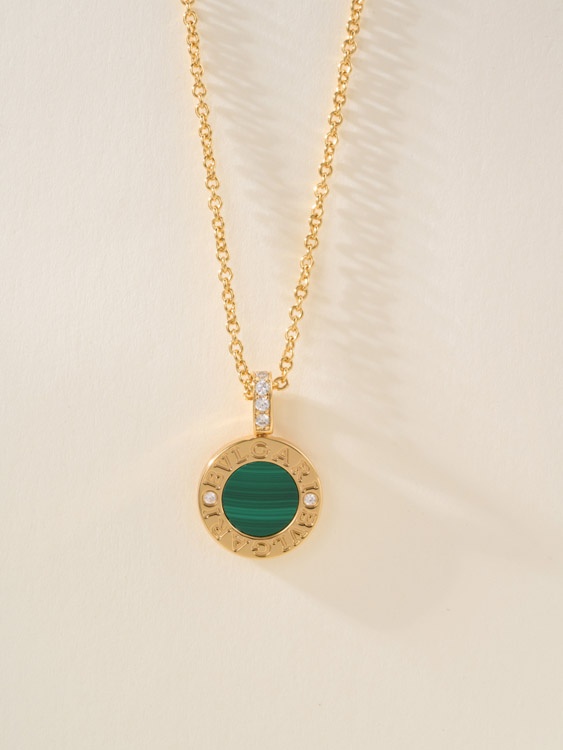 Bulgari double-sided green letter engraving vintage diamond coin necklace-4000