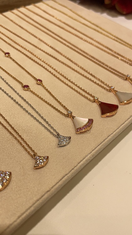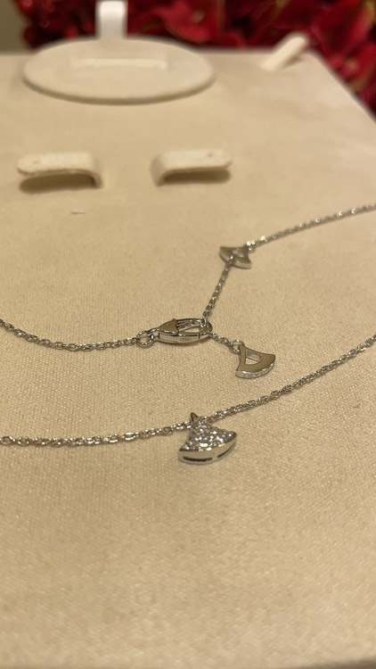 Bulgari small fan full diamond white gold necklace-3896