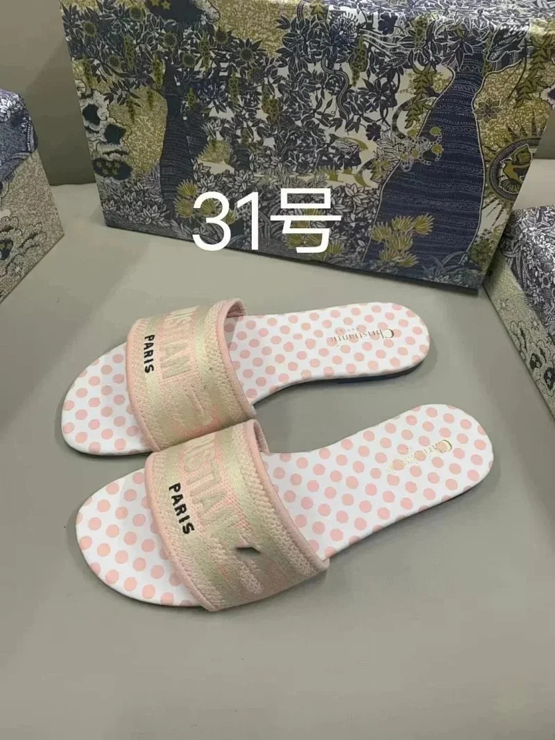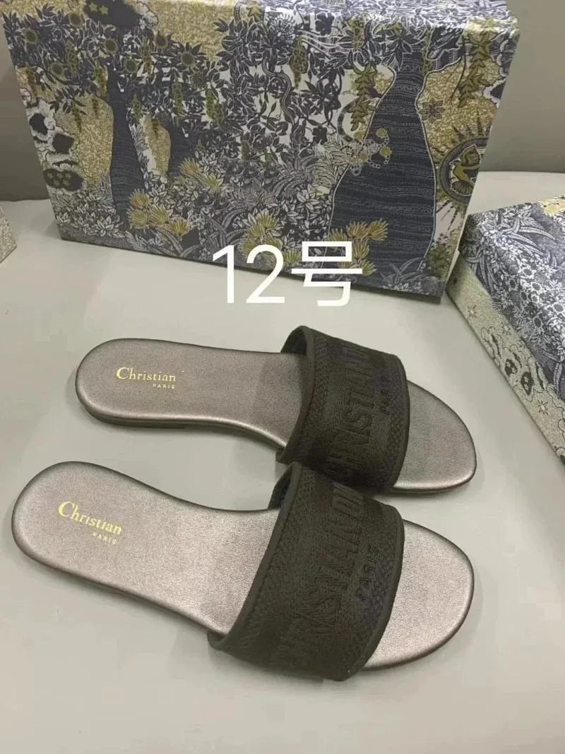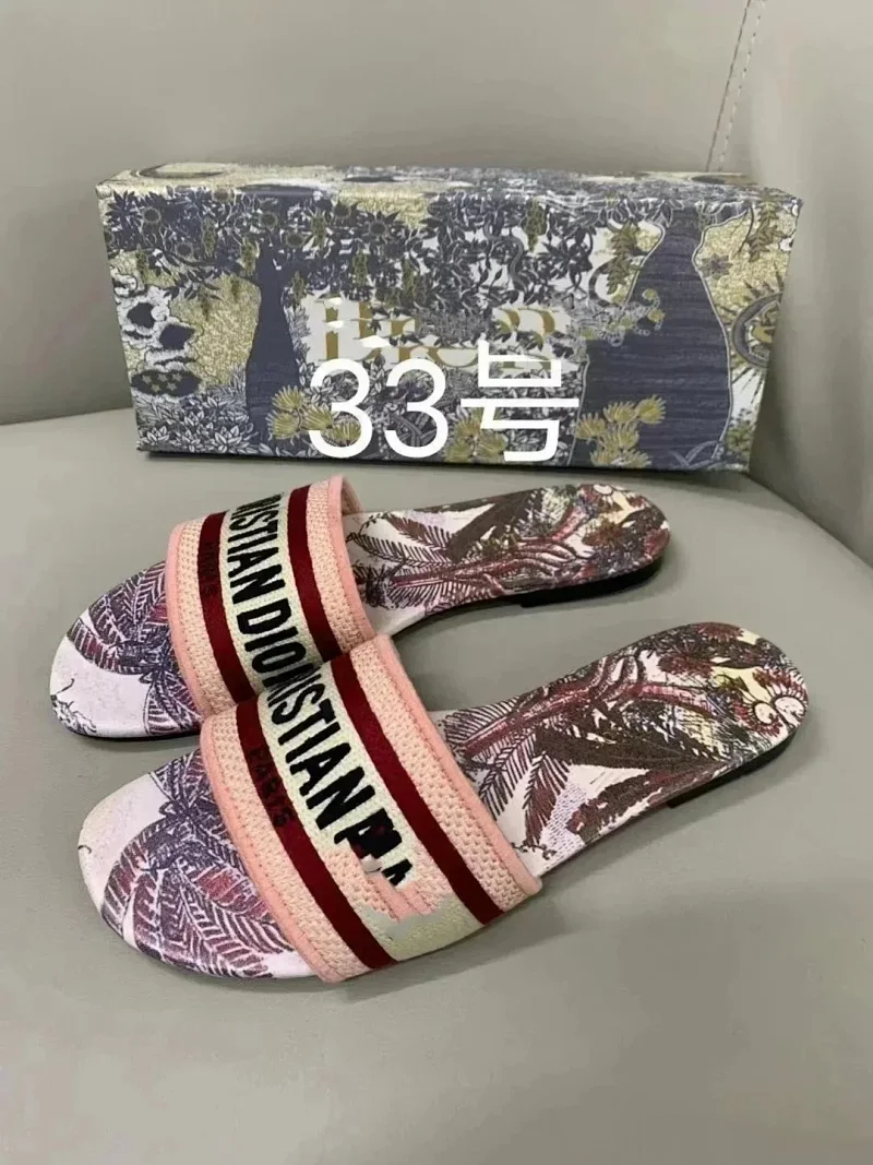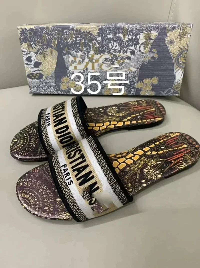 Home > Dior 2025 new summer genuine leather letter embroidered outerwear women's slippers-2336