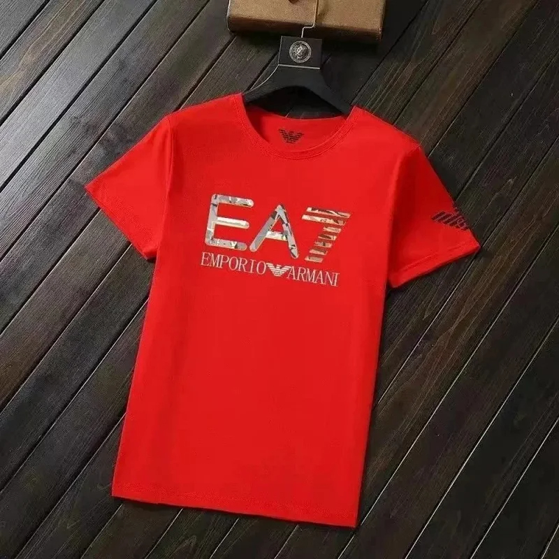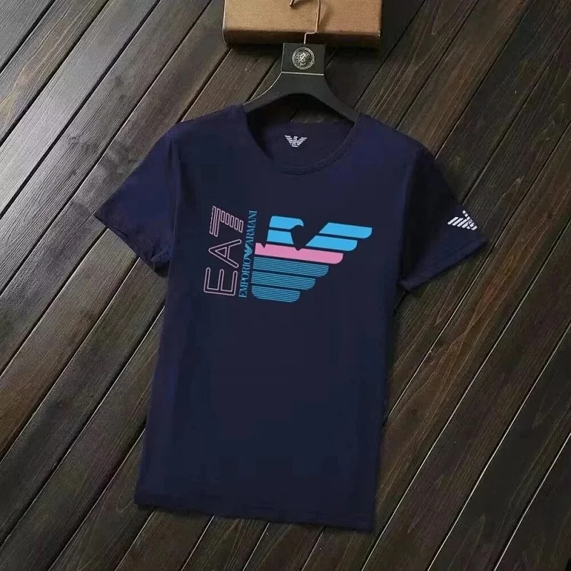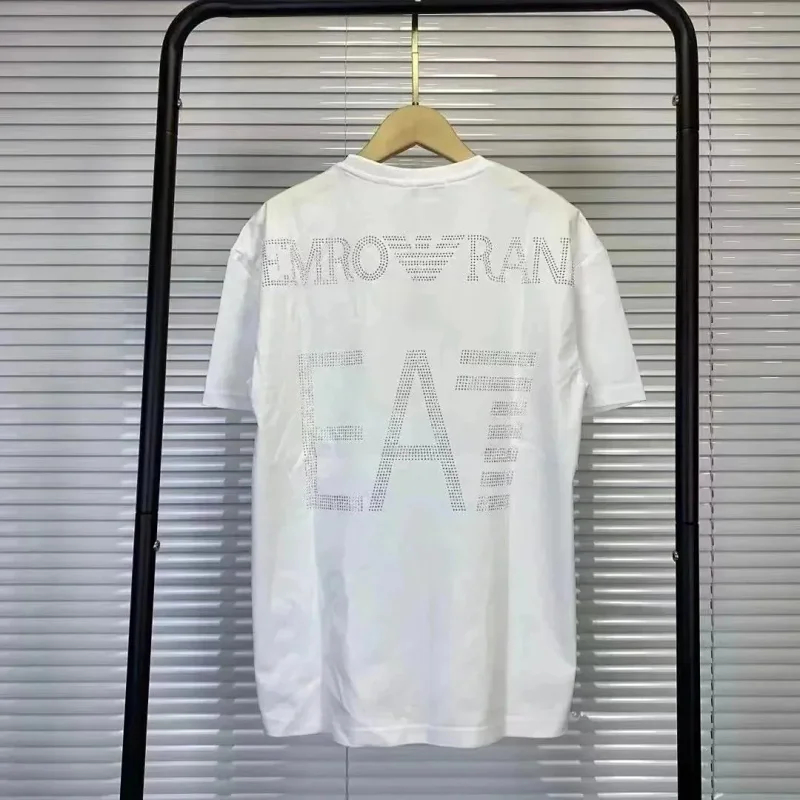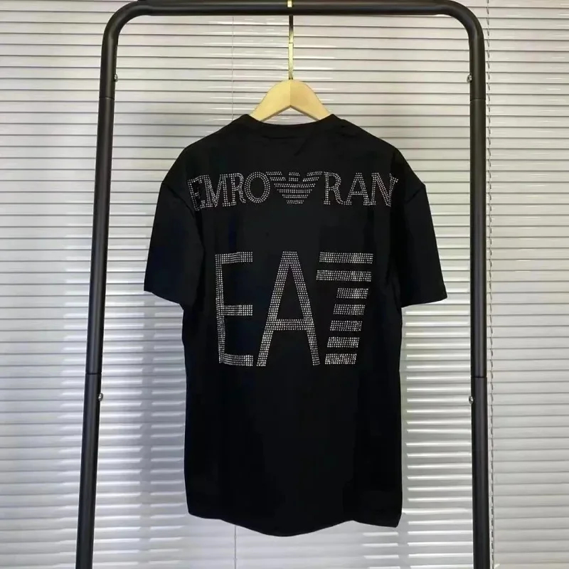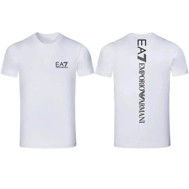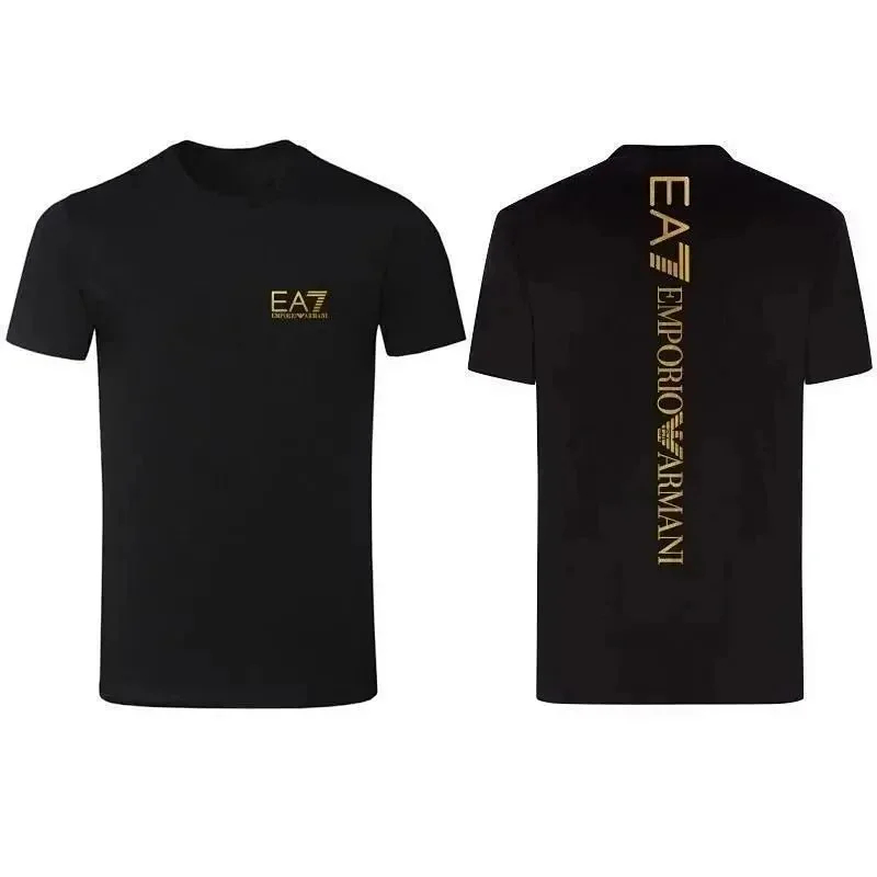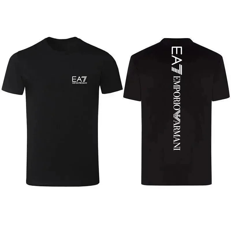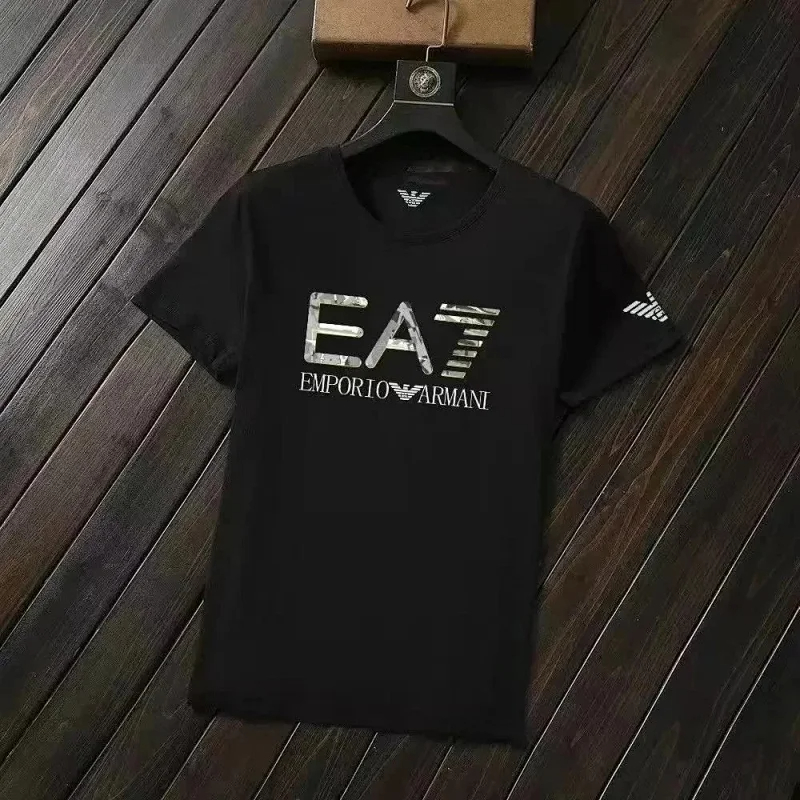 EMPORIO ARMANI EA7 Lettering Logo Solid Color Round Neck Short Sleeve T-Shirt-2831