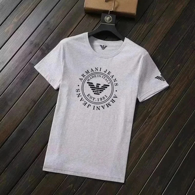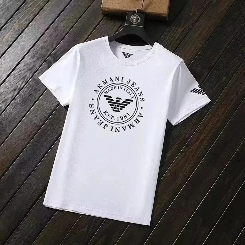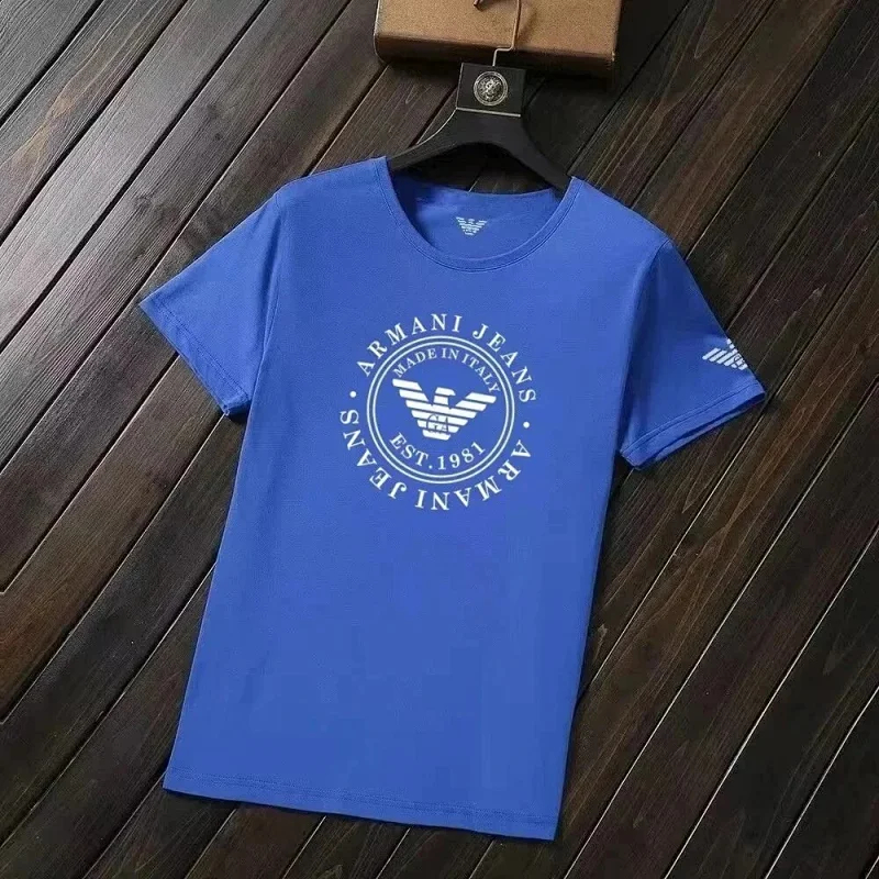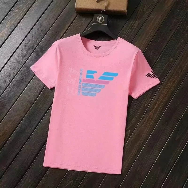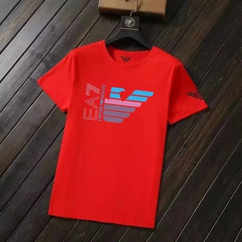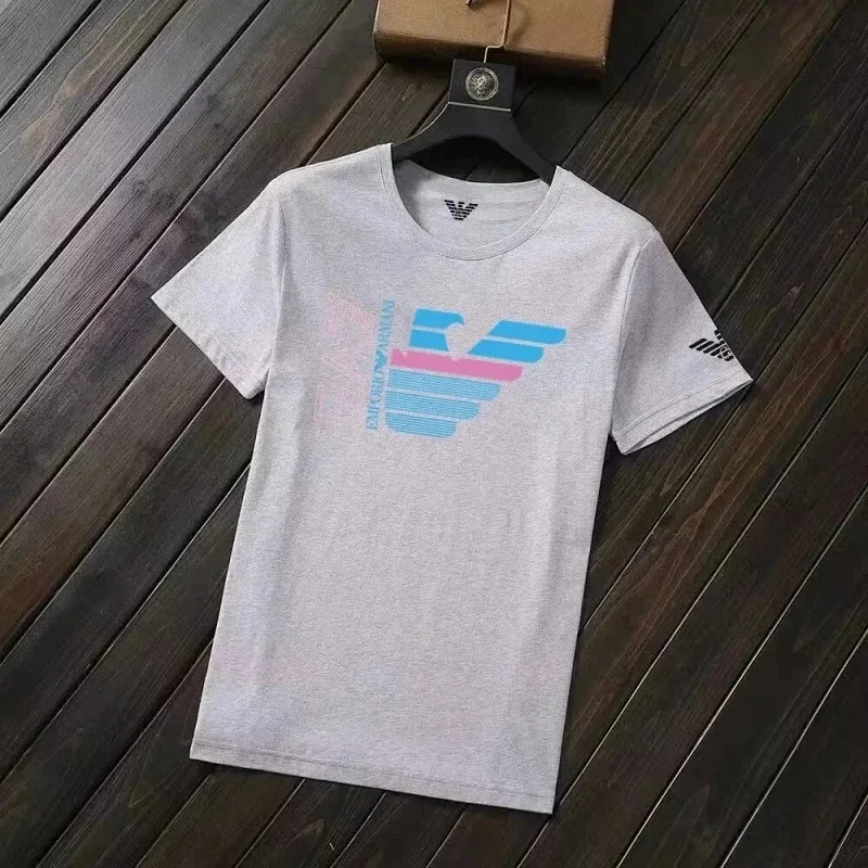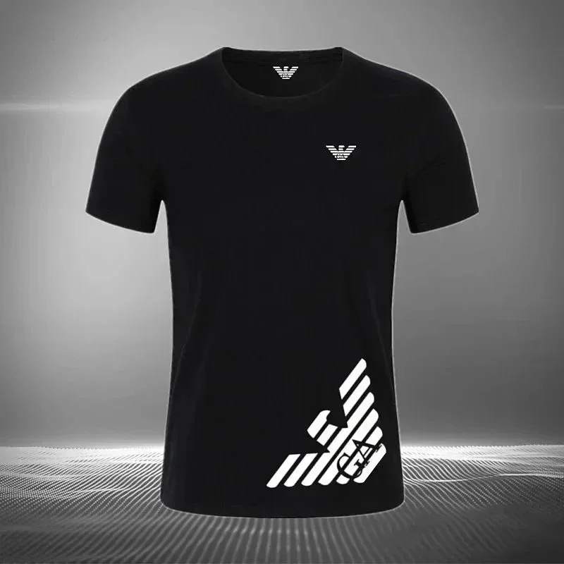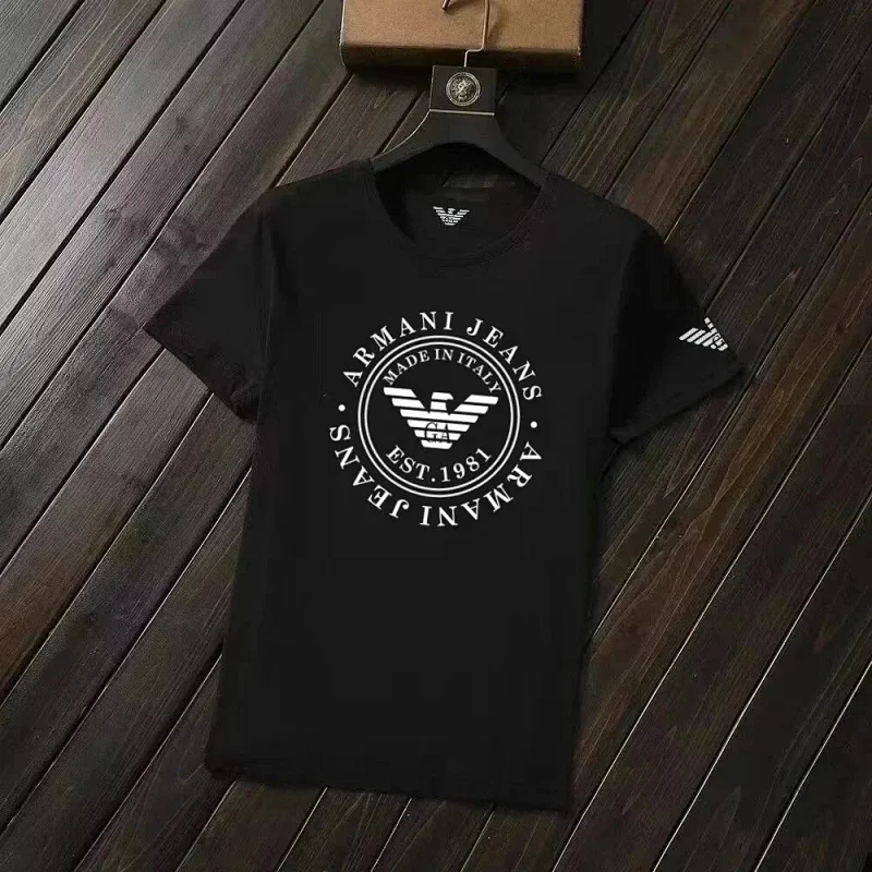 EMPORIO ARMANI EA7 Lettering Logo Solid Color Round Neck Short Sleeve T-Shirt-2831