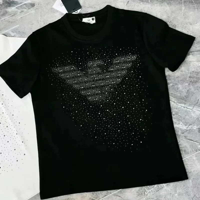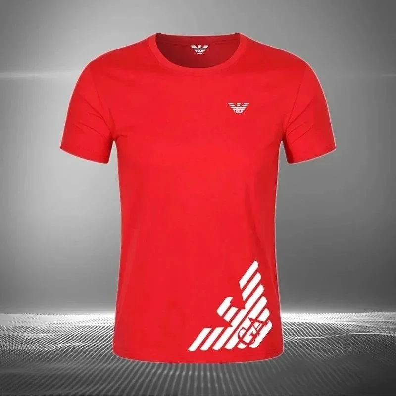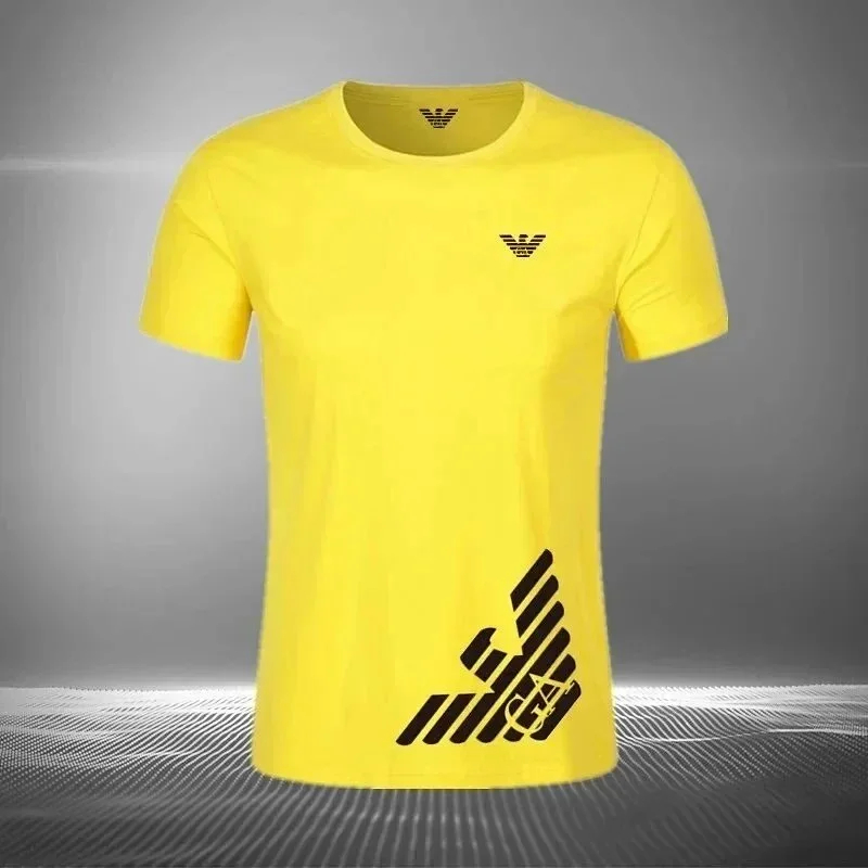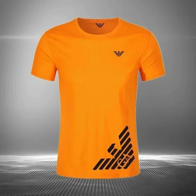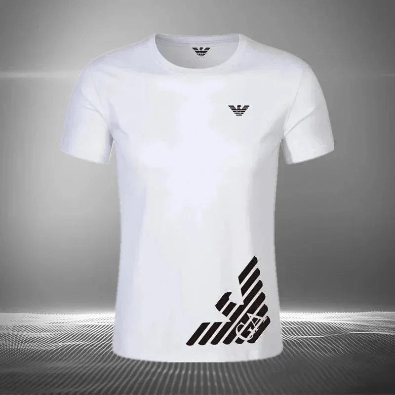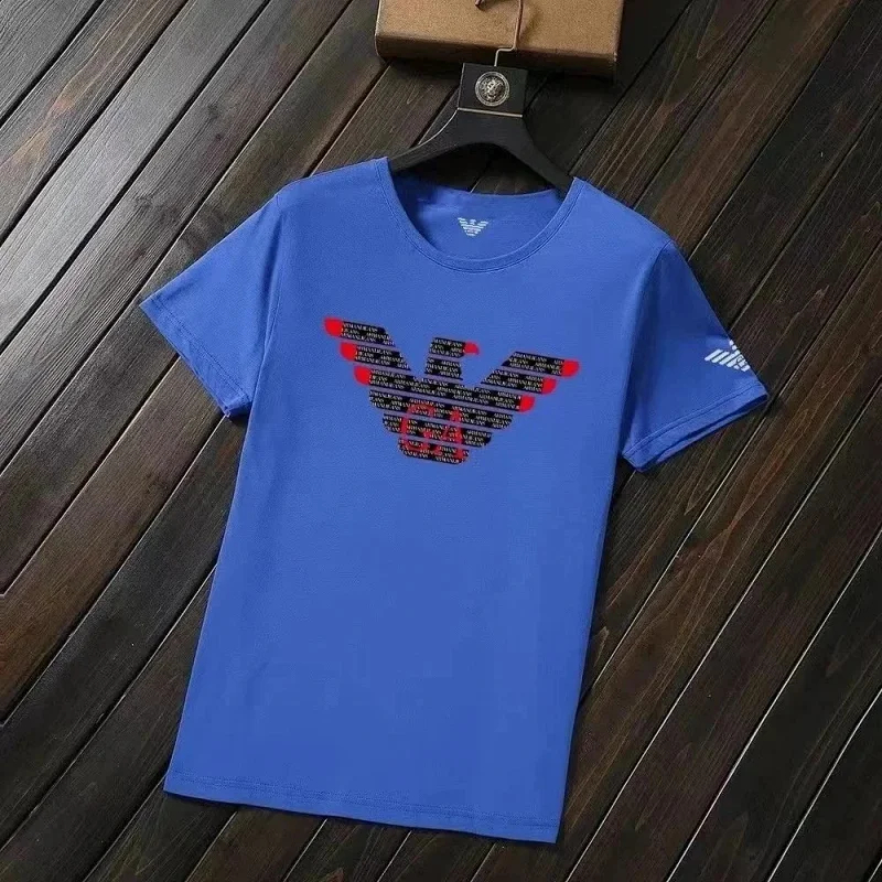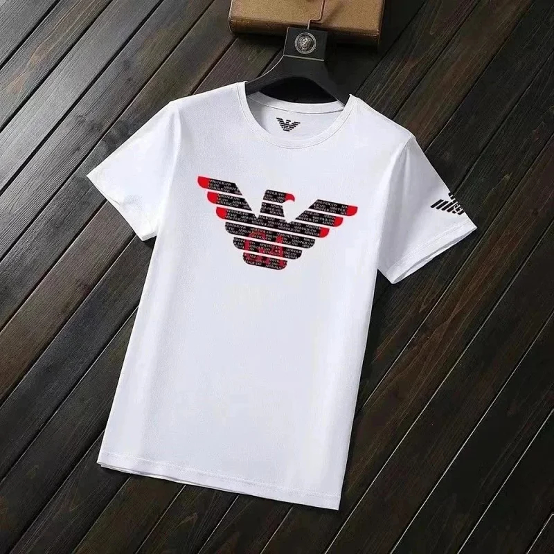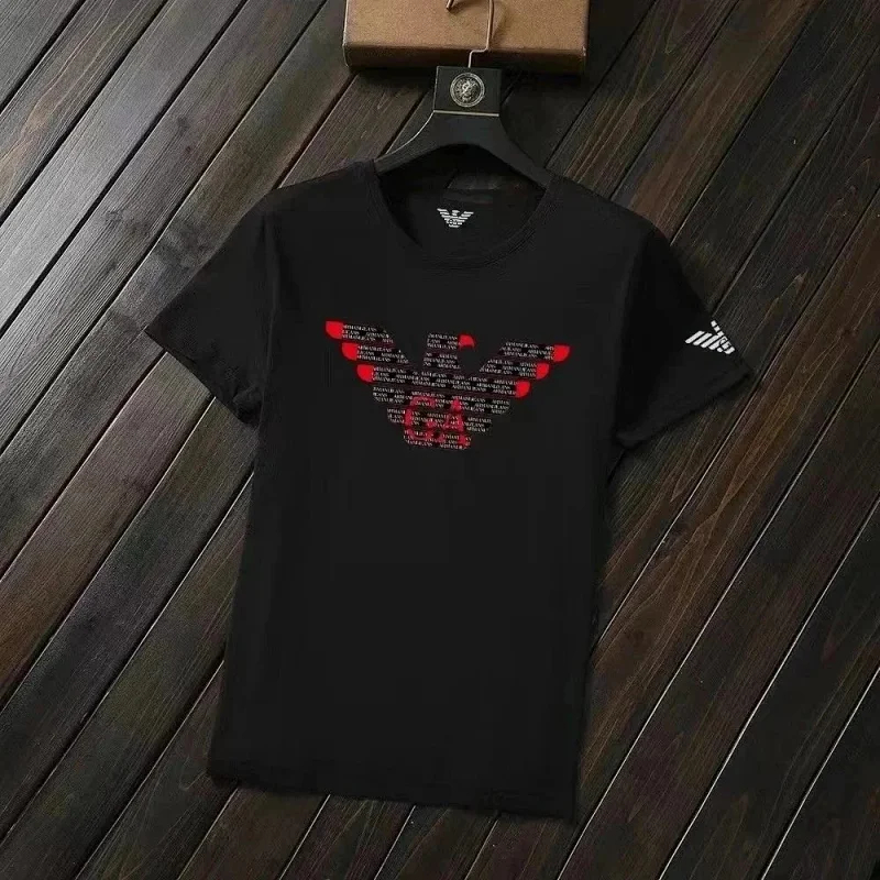 EMPORIO ARMANI EA7 Lettering Logo Solid Color Round Neck Short Sleeve T-Shirt-2831