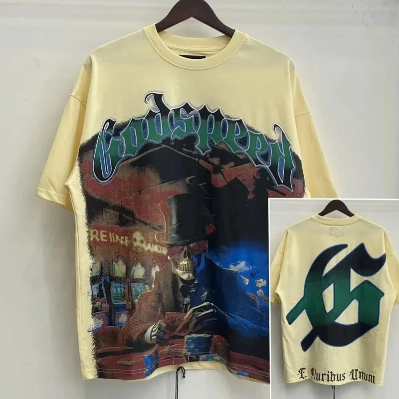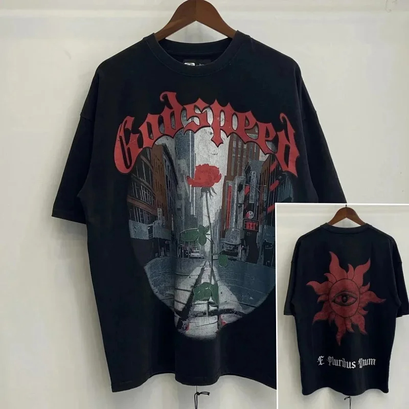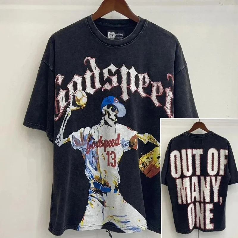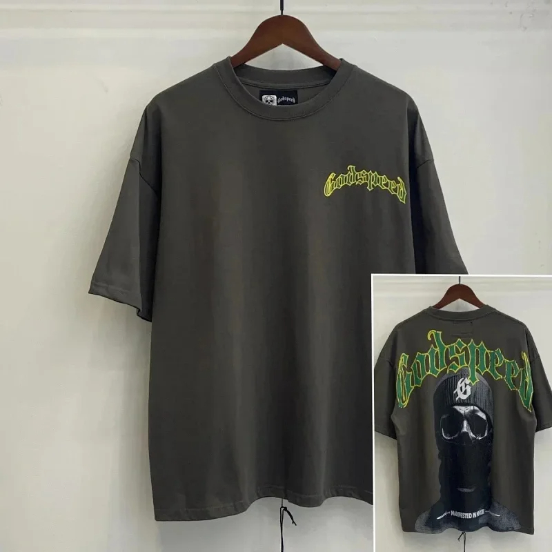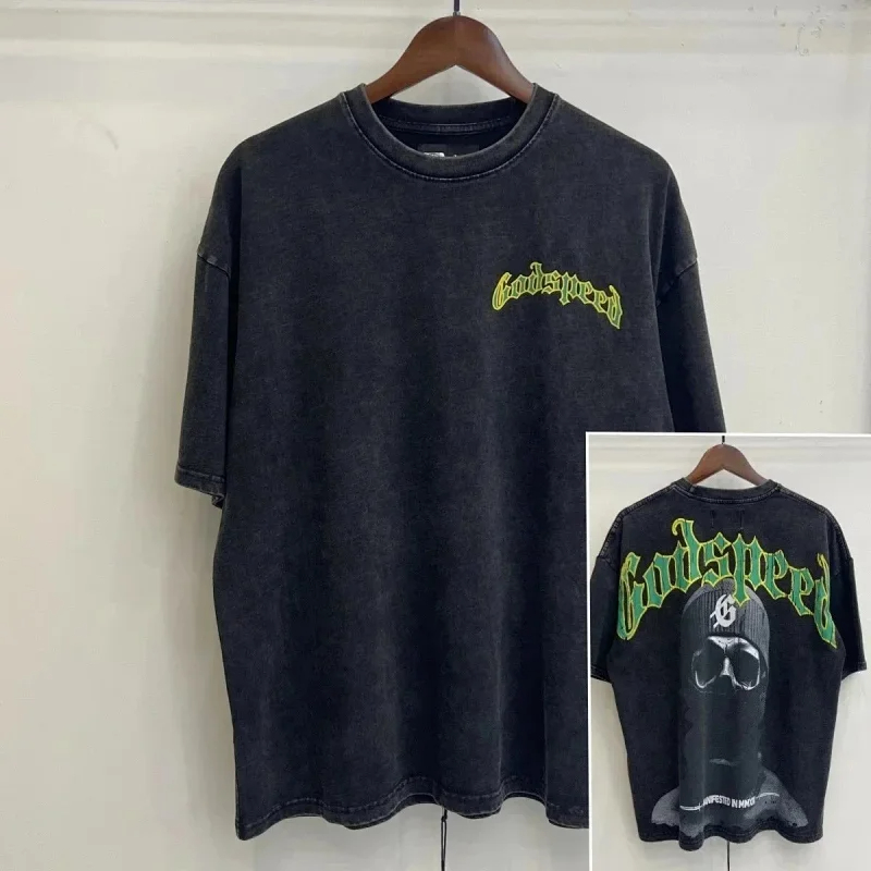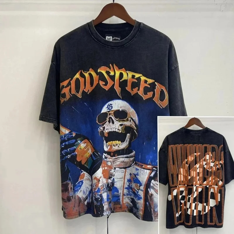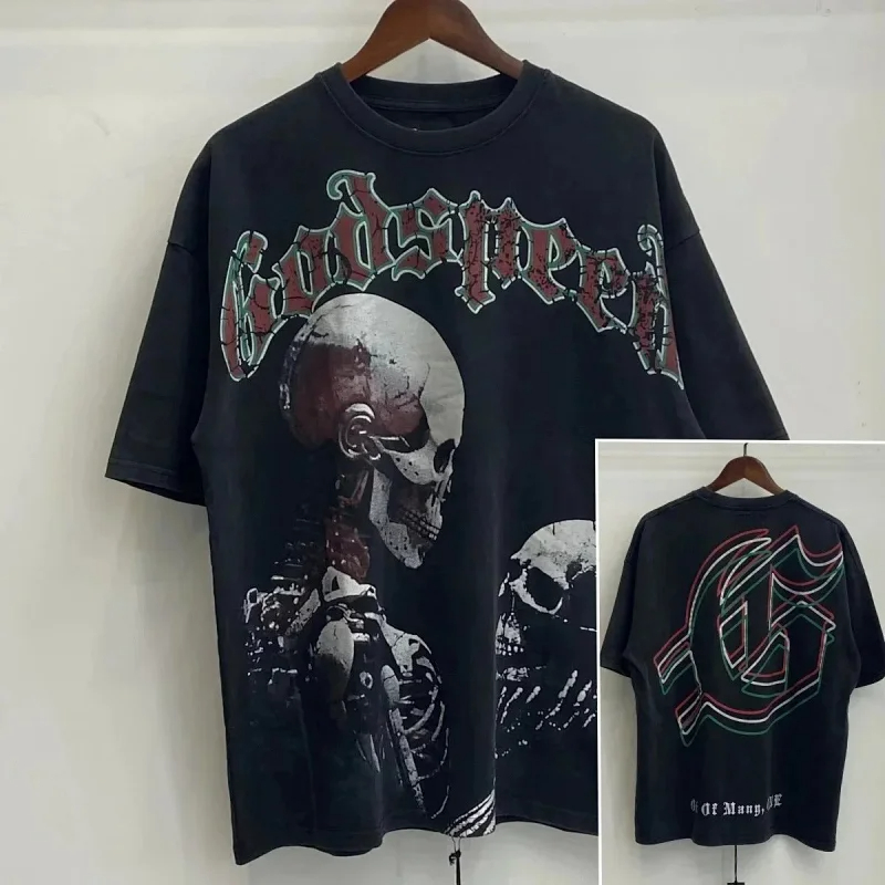 Godspeed Skull Rock Band Washed Casual Loose Short Sleeve T-shirt-2758