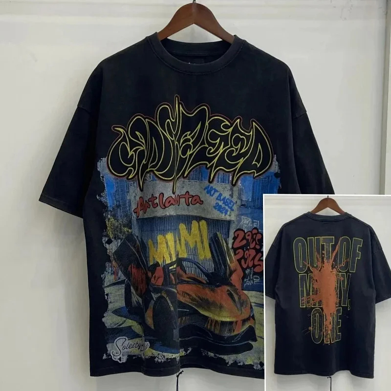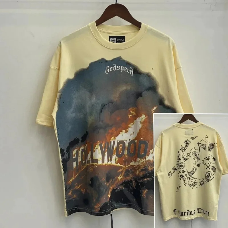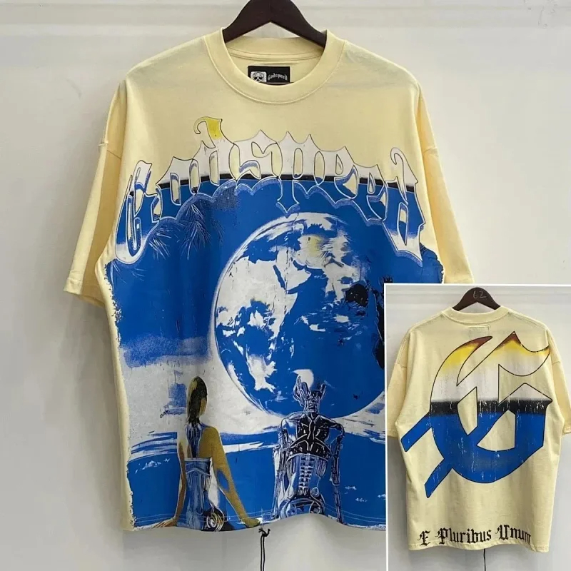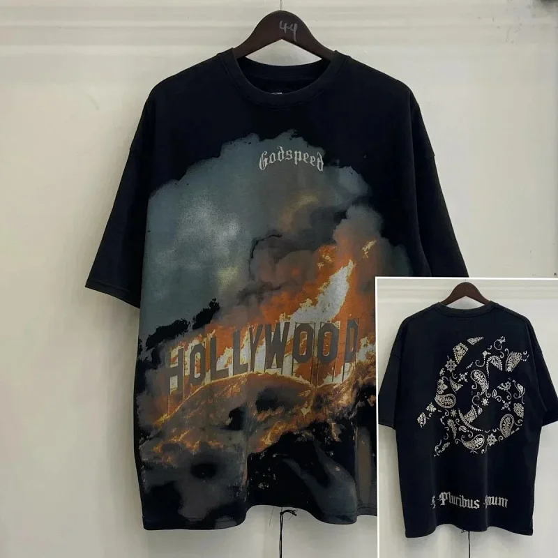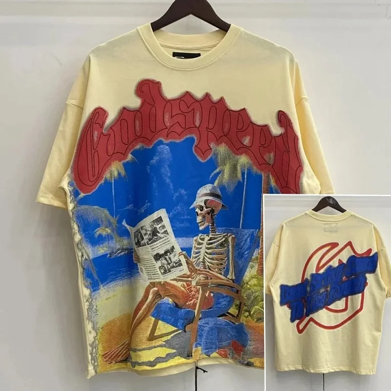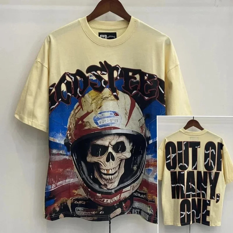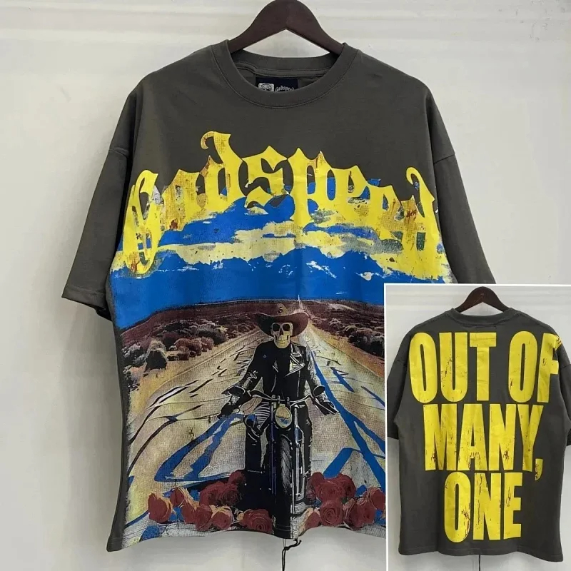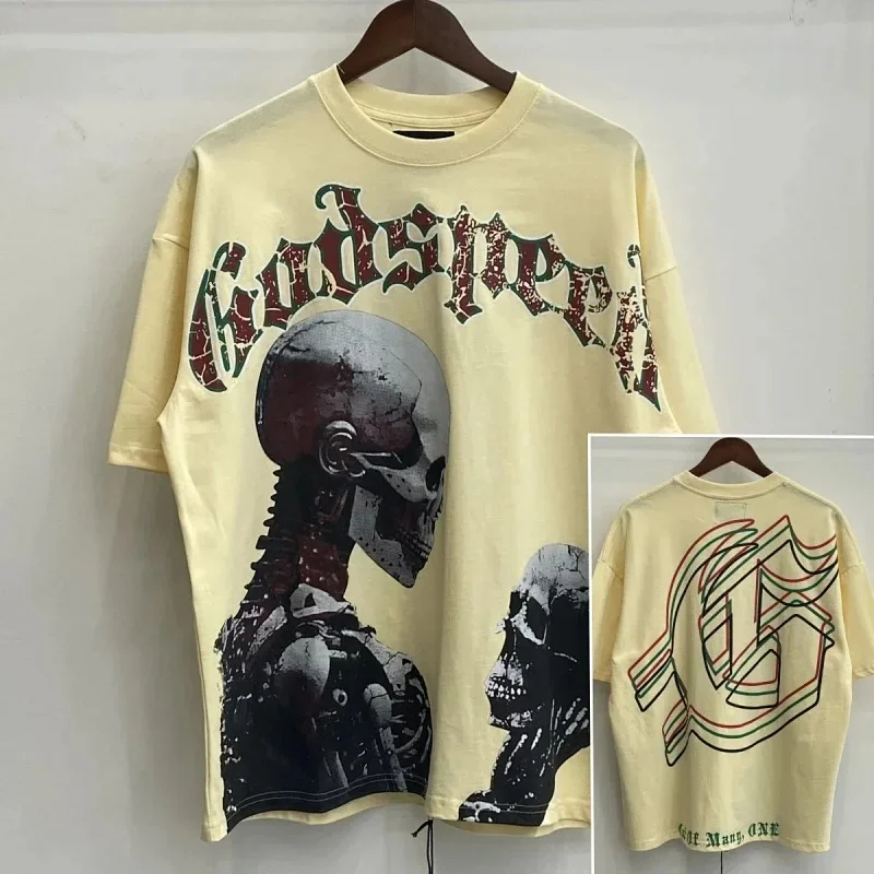 Godspeed Skull Rock Band Washed Casual Loose Short Sleeve T-shirt-2758