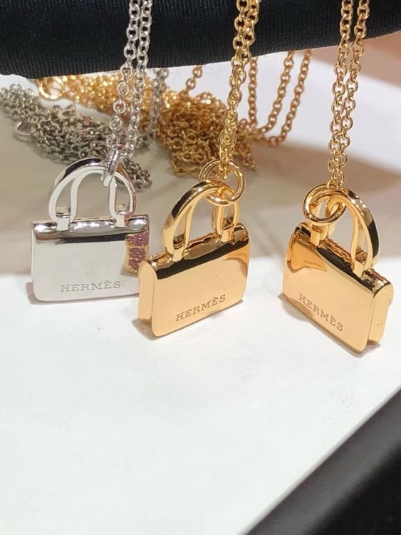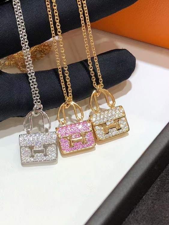 Home > Hermes padlock diamond rose gold pendant chain necklace-3837