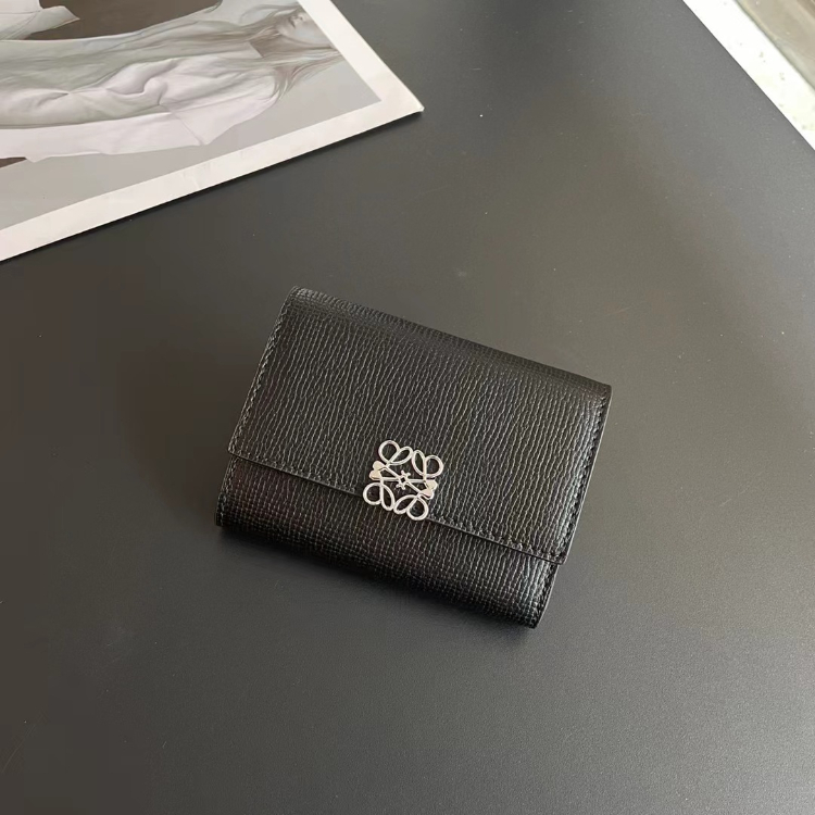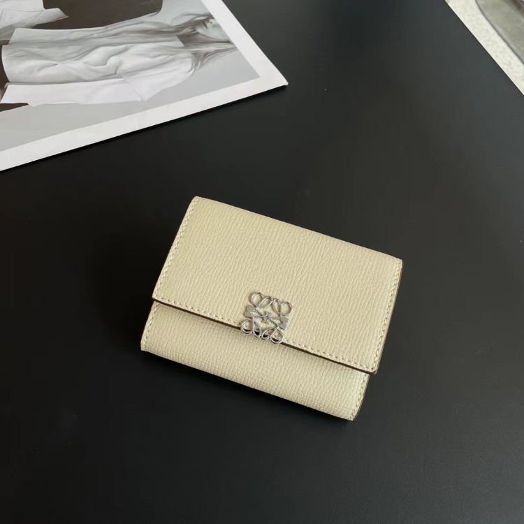 Loewe new tri-fold perforated floral pattern color-block wallet-5778