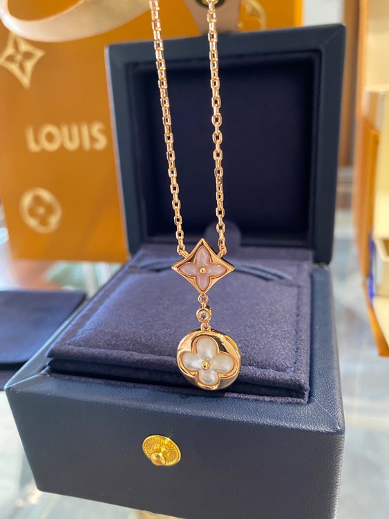 Louis Vuitton LV rose gold two-tone shell double flower necklace-3582