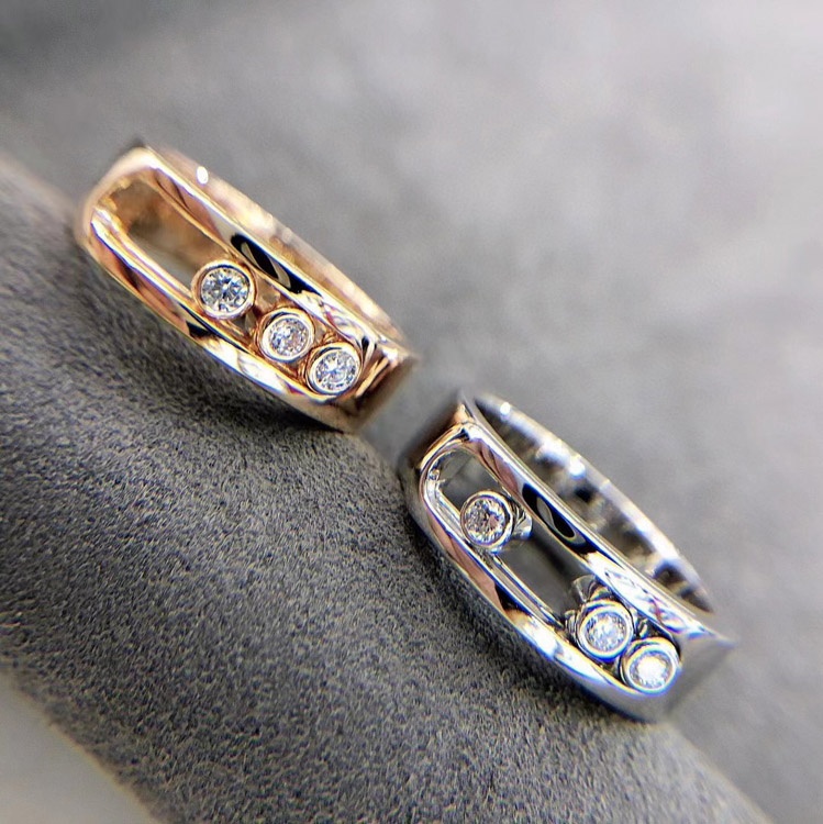 Messika Pave Diamond Ring Gold Hollow Ring Sliding Ring-3570