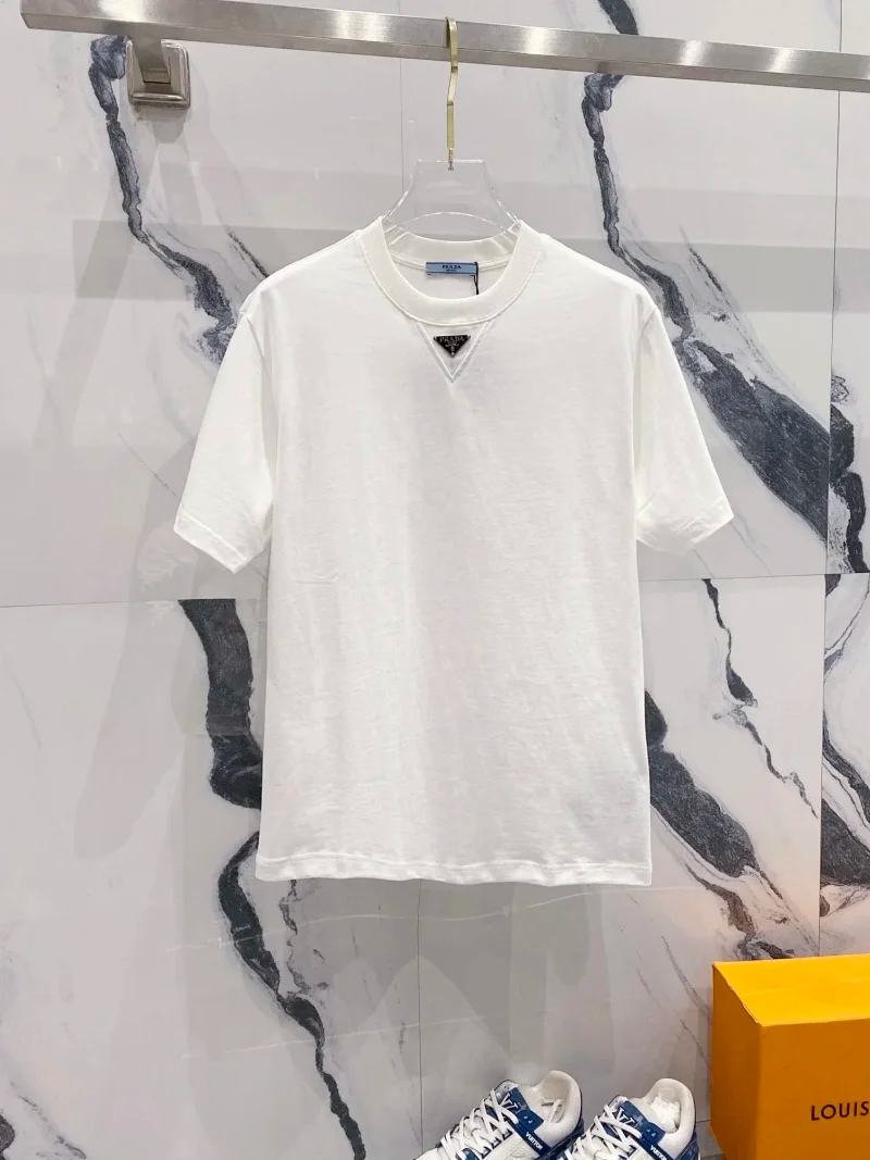Prada Solid Color Logo Printed Round Neck Pullover Short Sleeve T-Shirt (39 styles)-2837