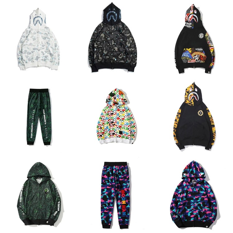 A BATHING APE x KID CUDI collaboration camouflage shark hoodie-5149