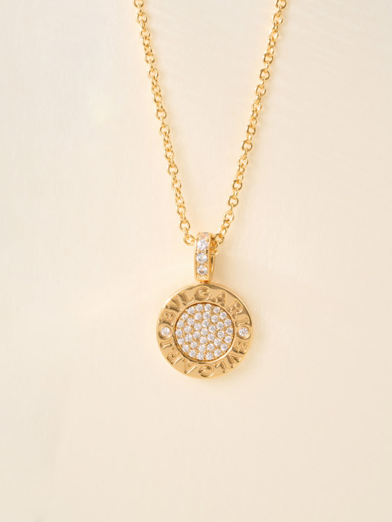 Home > Bulgari double-sided green letter engraving vintage diamond coin necklace-4000