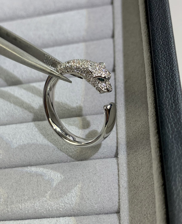Cartier micro-inlaid half diamond leopard ring-3670