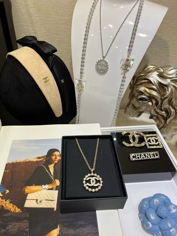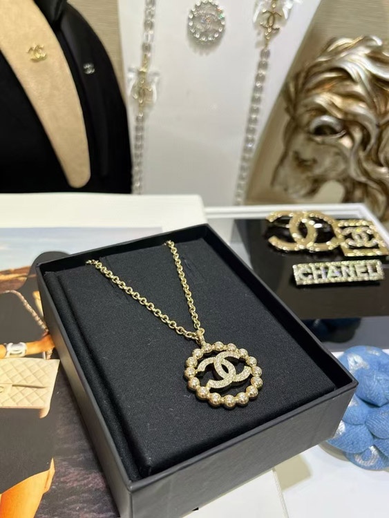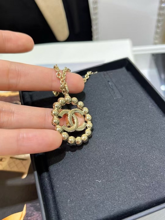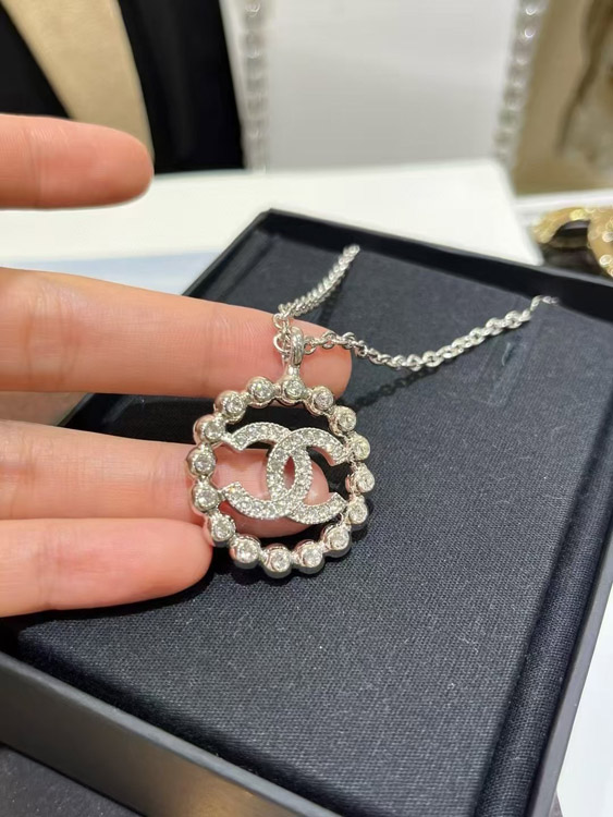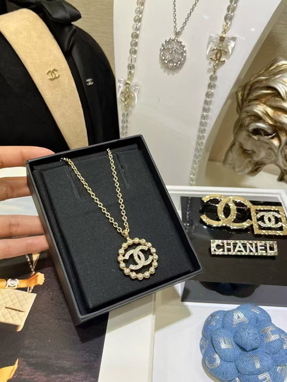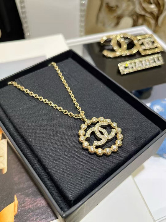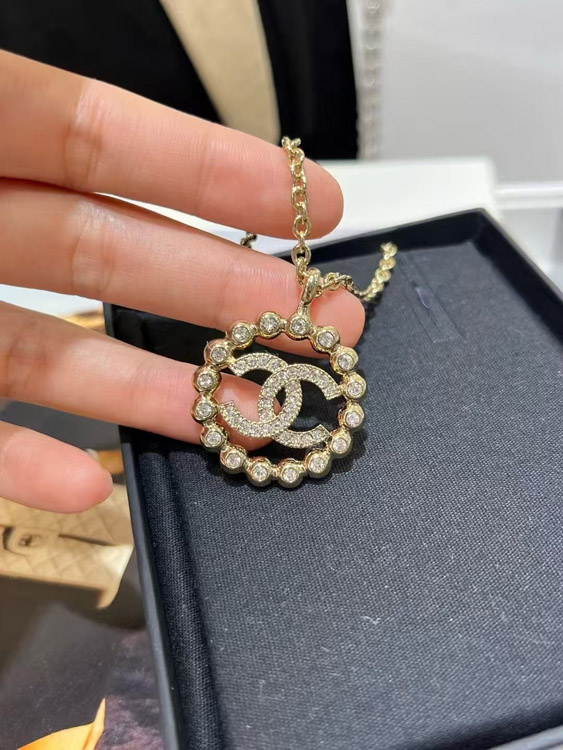 Home > Chanel gold full diamond double C hollow round necklace-3748