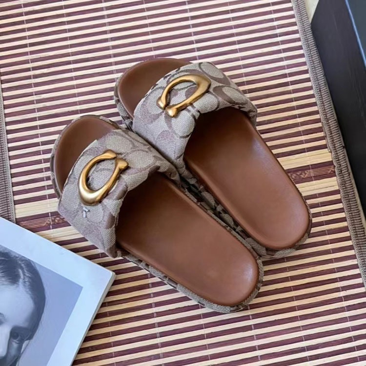 Coach platform sandals with metal buckle and canvas upper-5624