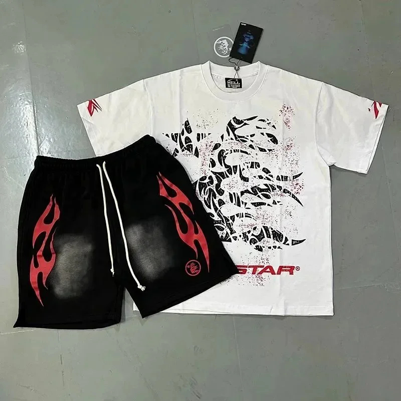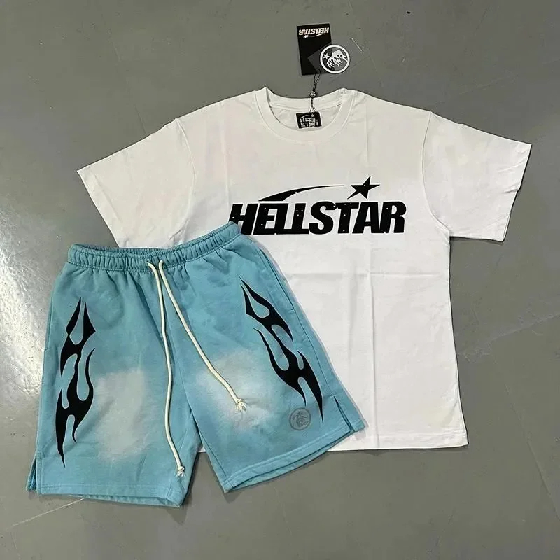 Home > Hellstar Letter Logo Printed Round Neck Short Sleeve T-Shirt Set-2790