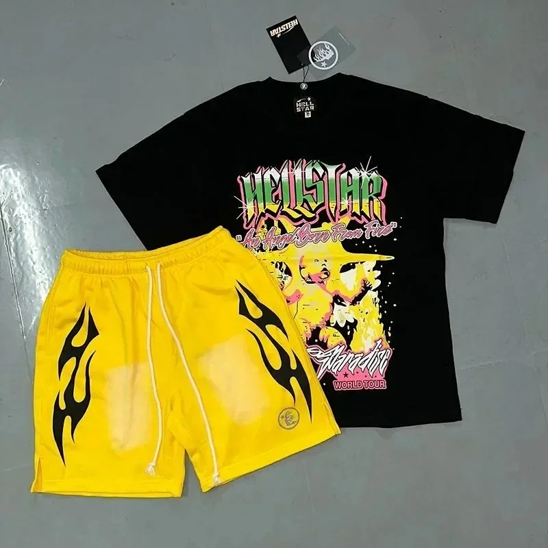 Hellstar Letter Logo Printed Round Neck Short Sleeve T-Shirt Set-2790