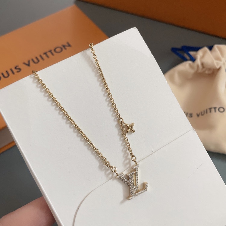 Louis Vuitton LV full diamond letter necklace-3955
