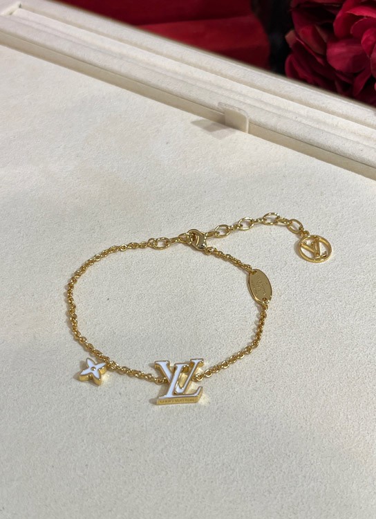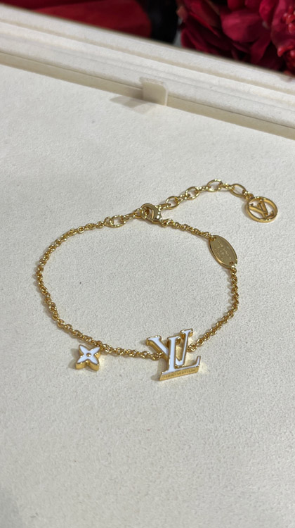 Louis Vuitton LV white enamel letter gold bracelet-3643