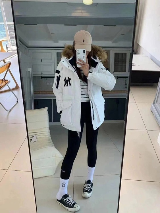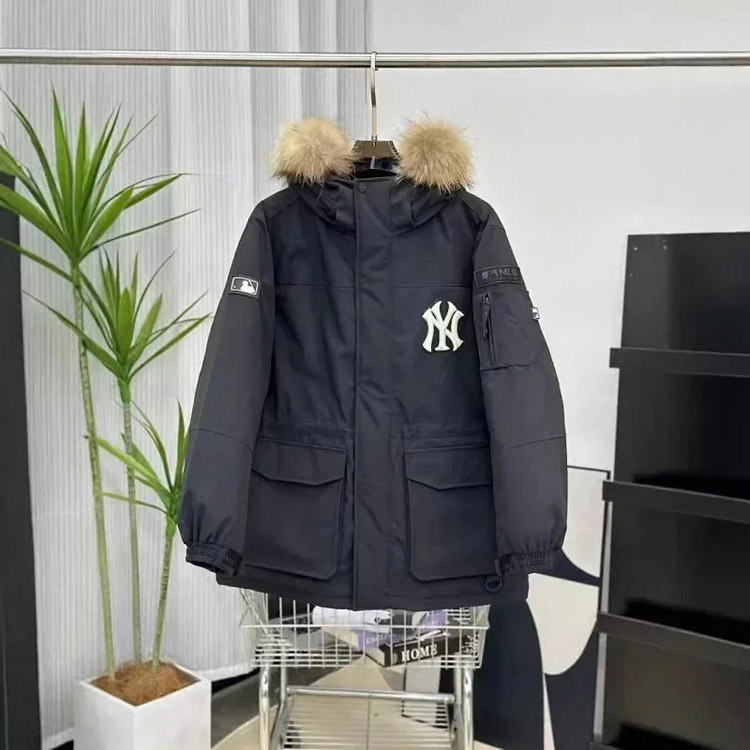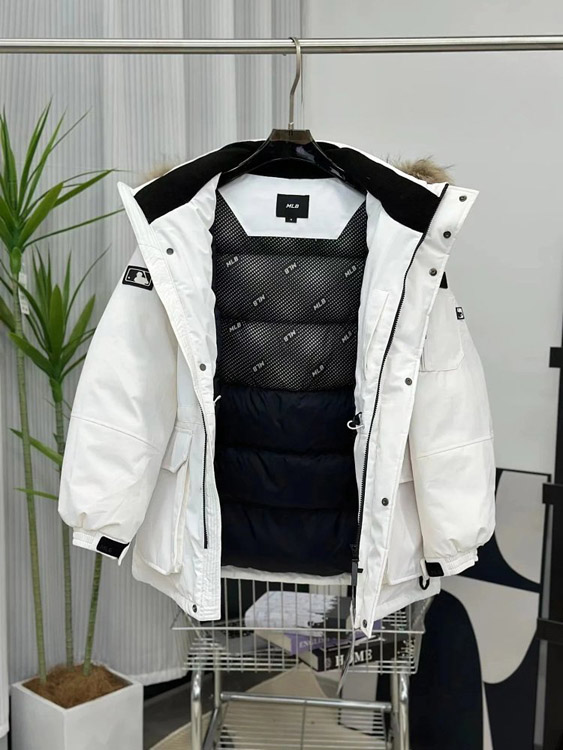 MLB workwear large fur collar mid-length white duck down parka jacket-4347