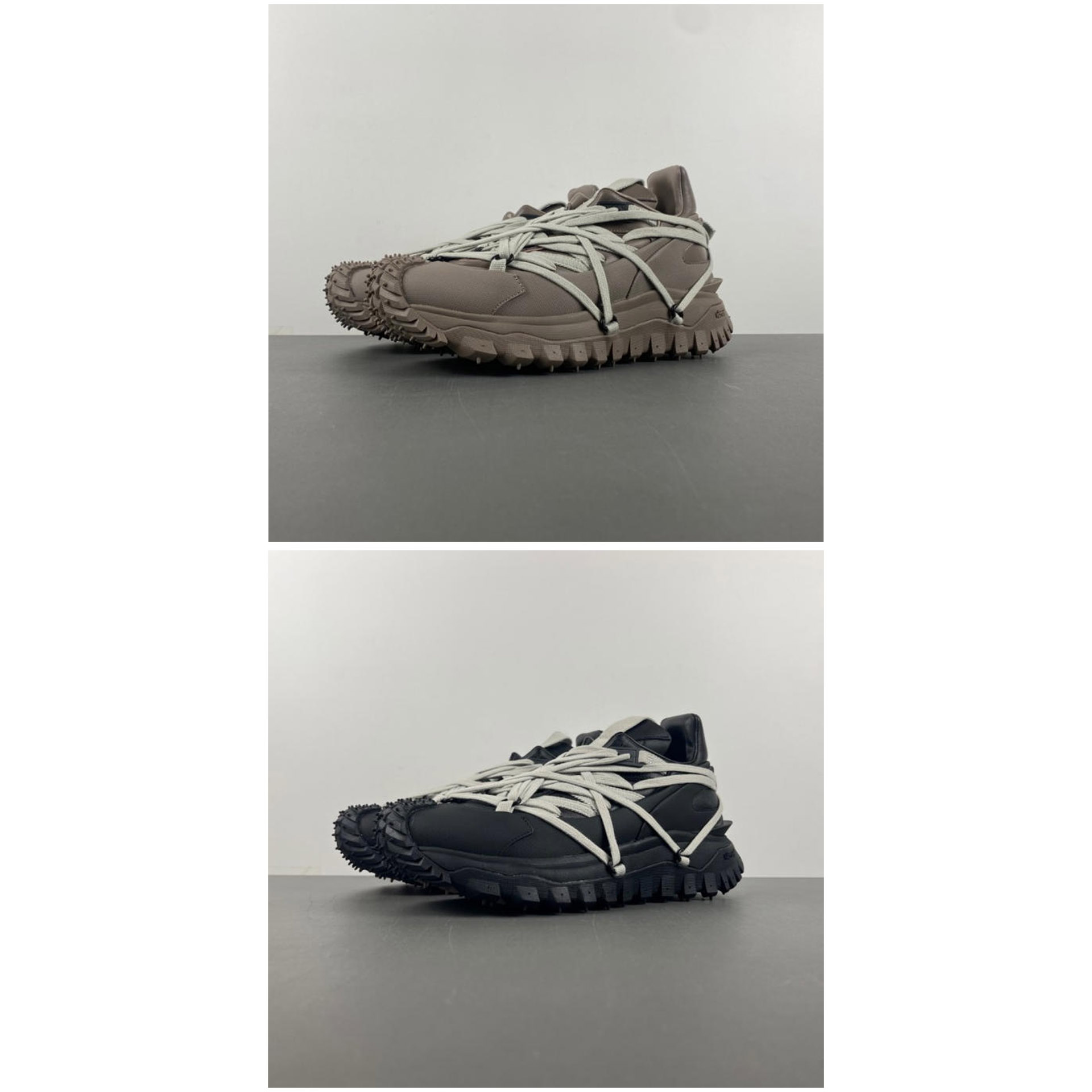 Moncler x RICK OWENS Trailgrip Megalace Leather Round-Toe Elastic Low-Top Casual Shoes-5115