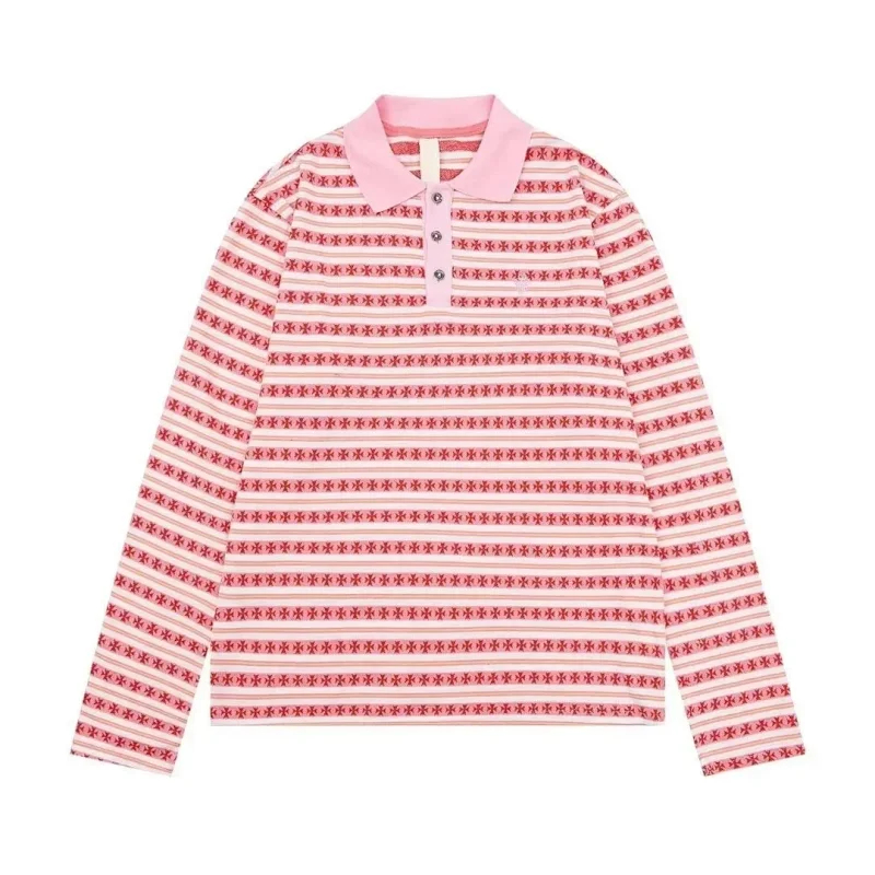 Polos Chrome Hearts CH New summer loose cross Sanskrit embroidered jacquard long-sleeved T-shirt-2517