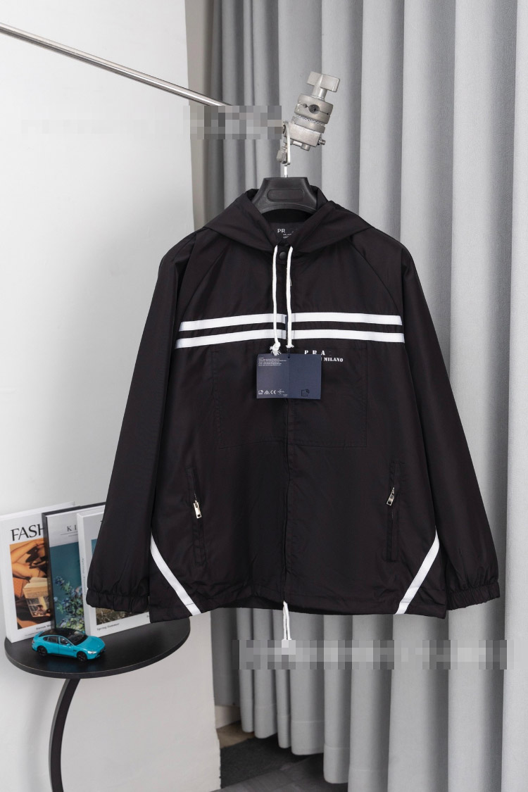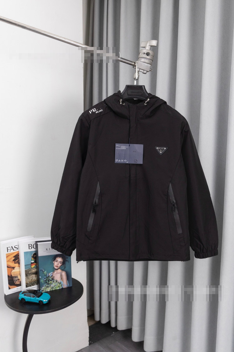 Prada new metal triangle logo multi-pocket jacket with zipper closure-5322