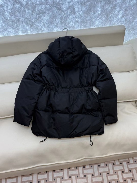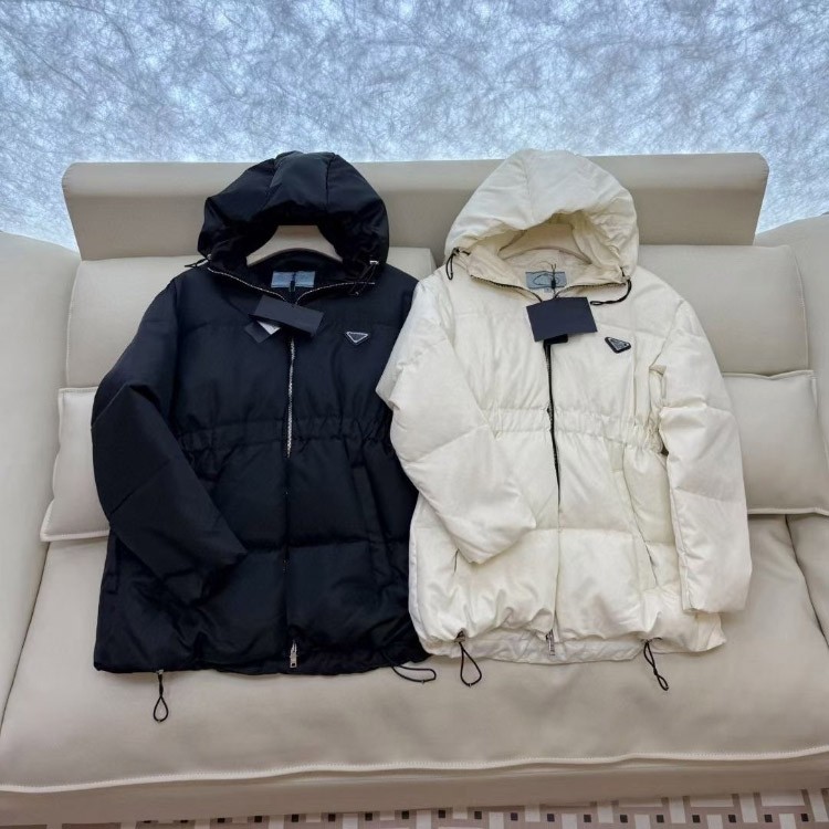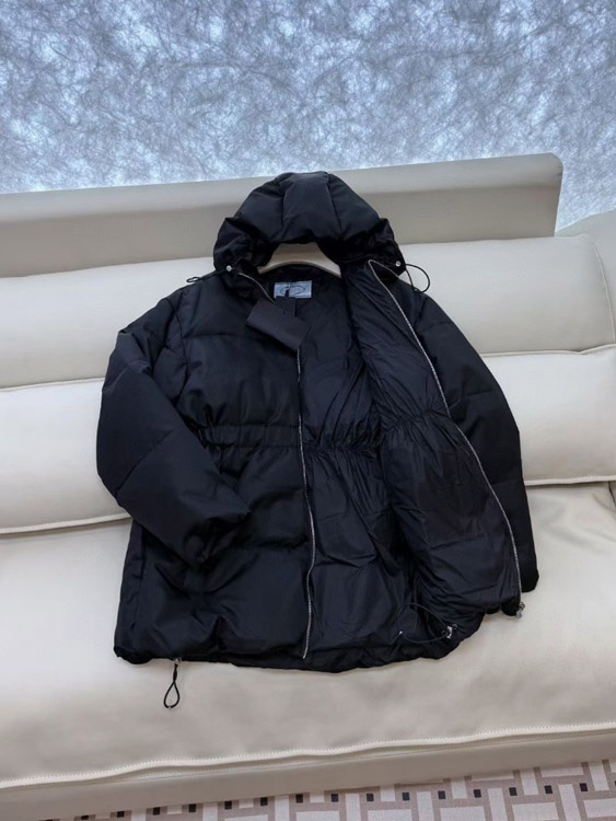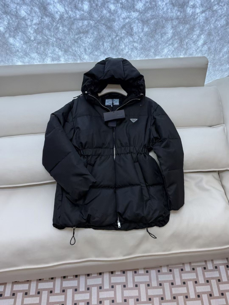 Prada new zip-up hooded down jacket with elastic waist windproof and warm-5353